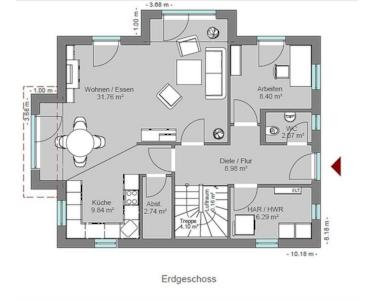 Das Dreigiebelhaus für die junge Familie. Mit raffinierten Grundrissen für das neue Familienleben. Im Erdgeschoss Essen und Wohnen auf rund 41 m² und eine leicht abgesetzte Küche mit Abstellraum. Dazu ein ruhiges Arbeits- oder Gästezimmer.
