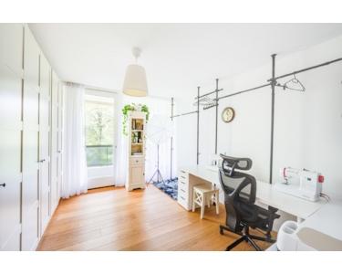 Die drei Schlafzimmer sind nach Westen ausgerichtet und teilen sich einen überdachten Balkon. Ein weiteres Zimmer befindet sich auf der Ost-Seite der Wohnung und wird derzeit als Arbeitszimmer mit kleinem Balkon genutzt.