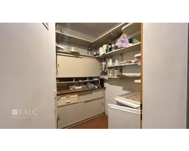 Zurück in der Küche erreichen Sie den Flur, von dem verschiedene Räume abgehen. Hier befinden sich eine kleine Speisekammer, das Badezimmer mit Badewanne, ein separates Gäste-WC sowie ein weiteres, flexibel nutzbares Zimmer, das derzeit als Schlafzimmer genutzt wird. Angeschlossen an diesen Raum liegt ein zusätzlicher Bereich, der sich hervorragend als Ankleidezimmer oder auch als Büro eignet – perfekt für Homeoffice oder kreative Hobbys.