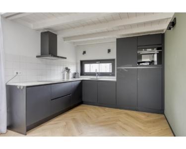 Die offene Küche ist in einem Eckschrank untergebracht und bietet alles, was Sie für ein komfortables Kocherlebnis benötigen. Die Küche ist mit einem schwarzen Dunstabzug ausgestattet, der einen modernen Look hat. Zum Kochen gibt es ein Induktionskochfeld, während die Kombi-Mikrowelle für schnelles und effizientes Aufwärmen und Kochen sorgt. Außerdem ist die Küche mit einem Quooker, einem Geschirrspüler und einem Kühlschrank mit Gefrierfach ausgestattet, so dass Sie mit allen Annehmlichkeiten versorgt sind. Ein perfekter Raum für die Zubereitung köstlicher Mahlzeiten!