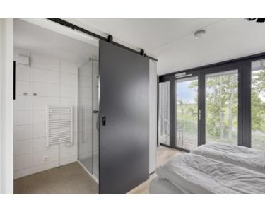 Das geräumige Hauptschlafzimmer ist ein luxuriöser und komfortabler Rückzugsort, ausgestattet mit einem doppelten Boxspringbett für einen großartigen Schlaf. Von diesem Schlafzimmer aus haben Sie direkten Zugang zu einem privaten Balkon, von dem aus Sie einen atemberaubenden Blick über den weiten Polder genießen können. Außerdem verfügt das Zimmer über ein eigenes Bad, das zusätzliche Privatsphäre und Komfort bietet. Ein perfekter Ort, um sich zu entspannen und mit einem wunderschönen Panorama aufzuwachen.