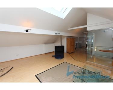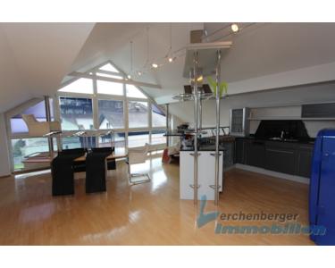 DG.: Wohnraum mit Glasgiebel, Küche.
