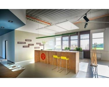 Rasterdecke mit integrierter Beleuchtung: Sorgt für ein angenehmes Raumgefühl.