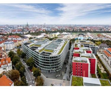 Die Theresie an der Theresienhöhe hat sich zu einem attraktiven und lebendigen Stadtquartier entwickelt. Sie vereint kurze Wege, ein urbanes Angebot, dynamische Architektur und moderne Büroflächen zu einer Business Community mit eigenem Lebensgefühl. Die bodentiefen Fenster sorgen für viel Licht und ein offenes Raumgefühl, eine Beschattung ist mittels des außen liegenden Sonnenschutzes gewährleistet. Eine tolle Kombination aus Effizienz, Lage und Ausstattung. TG-Einzelstellplätze à € 135,00, Außenstellplätze à € 115,00 und Lagerflächen à € 129,00/m² sind anmietbar.