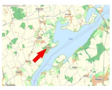 Dieses schön gelegene Grundstück hat eine Fläche von 777 m². Die Nachbarschaft ist geprägt von Einfamilienhäusern unterschiedlichster Baujahre, auf recht großen, gepflegten Grundstücken in einer Sackgasse. Ein kleiner Spaziergang, nur 150 Meter, und man ist am Ufer der Schlei, der längsten (45 km) deutschen Ostseeförde. Hier ist ein kleiner Sandstrand und ein Segelhafen, wie auch die Anlegestelle der Schlei-Ausflugsschiffe. Landschaftlich sehr reizvolle Wege führen entlang der Schlei. Zur Kita in Ulsnis sind es nur 1km, zum kleinen, aber gut sortierten Supermarkt in Brodersby sind es 5,8 km, zu dem wunderschön an der Schlei gelegenen Restaurant "Fährhaus Missunde" 7,5 km, nach Süderbrarup, dem Zentralort mit einer Infrastruktur, für die ihn manche kleinere Stadt beneiden würde, inklusive DB-Bahnhof 9,8 km und in die alte Residenzstadt Schleswig mit ihrem Schloss Gottorf und vielen historischen Palais und prachtvollen Bürgerhäusern nur 16 km. Nach dem reizenden kleinen Schlei-Hafenort Kappeln sind es 21 km. Ulsnisstrand ist der perfekte Ort, die Seele baumeln zu lassen und dennoch viel Abwechslung in der Nähe zu haben.