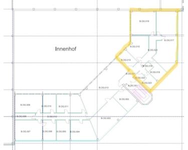 Die Fläche ist in Absprache mit dem Eigentümer flexibel aufteilbar, so dass z.B. auch ein zusätzliches Großraumbüro oder weitere abgetrennte Büros denkbar sind.