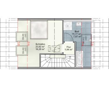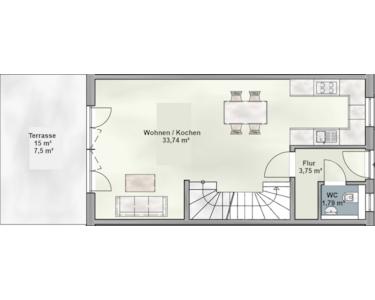 Das Reihenmittelhaus verfügt über insgesamt 3 Etagen (EG+OG+DG) und einen Keller. Im Erdgeschoß befinden sich der große Wohn- Essbereich, die Küche, ein Flur, und ein WC. Im Obergeschoß 2 Schlafzimmer und ein Bad. Im Dachgeschoss sind ein Schlafzimmer und ein weiteres Bad. Im Keller sind der Hobbyraum, ein Kellerraum und der Hauswirtschaftsraum. Die genaue Aufteilung ist noch genau bestimm- und variierbar. Das Haus verfügt über eine hochwertige Ausstattung und ist mit allen wichtigen Details ausgestattet. Zu diesen gehören z.B.: