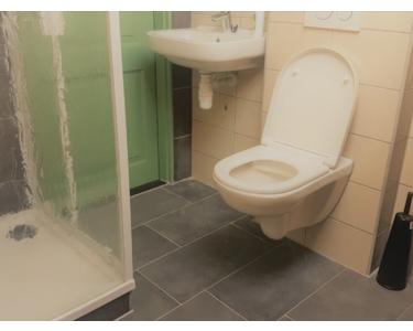 Badkamer op de 1e verdieping voorzien van douche, toilet, wastafel en designradiator.