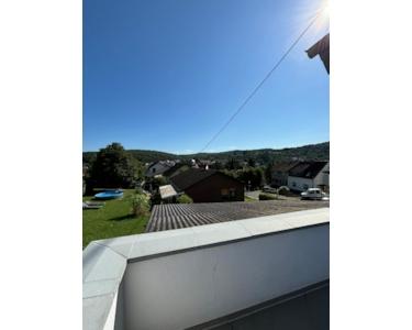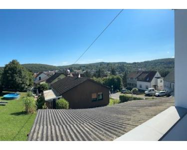 Erdgeschoss: Wohn-Essbereich mit Kaminofen (Kassette) mit Zugang zur Terrasse mit Panoramablick in den Ort und die schöne Waldlandschaft, Diele mit Treppenhaus zum Unter-, und Obergeschoss, Küche, Hauswirtschaftsraum, 1 Zimmer, Tageslichtbad mit Wanne