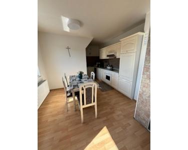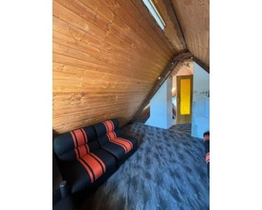 Im Obergeschoss erwarten Sie zwei gemütliche Zimmer und eine offene Küche, die zum gemeinsamen Kochen und Verweilen einlädt. Das lichtdurchflutete Tageslichtbad mit Badewanne bietet Komfort und Entspannung. Ein Kaminofen sorgt auch hier für wohlige Wärme. Eine Treppe führt Sie weiter ins Dachgeschoss.