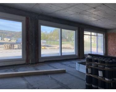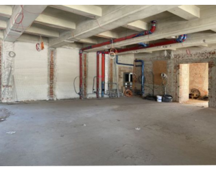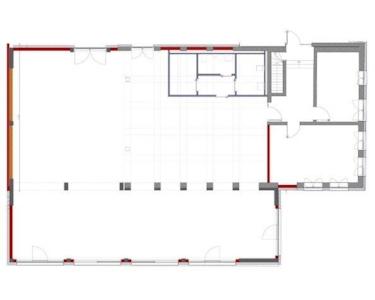 Im Erdgeschoss des sanierten Altbaus befindet sich eine Ausstellungsfläche. Sie ist sowohl über das Treppenhaus als auch über mehrere Außentüren begehbar. Von der Diele aus sind der Ausstellungsraum, zwei helle Büroräume sowie der Keller zugänglich. Die Belieferung erfolgt über zwei doppelflügelige Türen. Durch die große Fensterfront mit zwei Ausgängen nach Süden zur vorgelagerten Terrasse ist die Fläche sehr hell und freundlich. Die EDV- und Stromverkabelung verläuft in Bodentanks, in der abgehängten Decke sind LED-Leuchten integriert. Von der Ausstellungsfläche wurde in Trockenbau eine Teeküche mit Küchenanschlüssen und WCs abgetrennt. Der über eine Steintreppe erreichbare Keller hat eine Höhe von ca. 2 m und unterteilt sich in einem Abstellbereich und drei Kellerräume mit Fenstern.