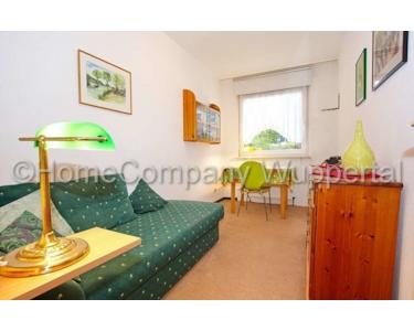 This apartment is located in a well-maintained area which includes a pool which can be used for free by the tenant. A bus driving into the city can be reached in only a few minutes. The spacious apartment offers a living area consisting of a couch, a flat screen TV, as well as a dining table seating four people. From here you can reach the kitchen, which offers the tenant an oven with integrated microwave and a ceramic cooking field, a fridge with a freezer department, as well as all the utensils. The bath including the shower is modernly tiled, the toilet is separate. The bedroom offers the tenant a ceiling height closet and a modern bed (2, 00 x 2, 00 m). The apartment even has a guest room with a desk. This is a non-smoking property. All ancillary costs and energy expenses for one person, the usage of the internet and the usage of the pool are included in the rent of € 1125, 00. The price for 2 persons is 1275,00 and for 3 persons € 1400,00. If needed an underground parking spot can be rented additionally for € 60, 00 a month. The tenant pays for the final cleaning. It is charged at € 35.00 per hour.