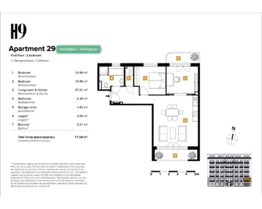 Diese exklusive 3-Zimmer-Neubauwohnung im 1. Obergeschoss bietet auf 71,59?m² ein modernes, komfortables Zuhause mit hochwertiger Ausstattung und durchdachtem Grundriss. Die Wohnung verfügt über zwei Balkone, davon eine großzügige, überdachte Loggia, die zum Verweilen im Freien einlädt. Ein praktischer Abstellraum, edle Parkettböden und luxuriöse Ausstattungsdetails machen diese Immobilie zu einem idealen Ort zum Wohlfühlen. Ein Aufzug sorgt für bequemen Zugang zu allen Etagen.