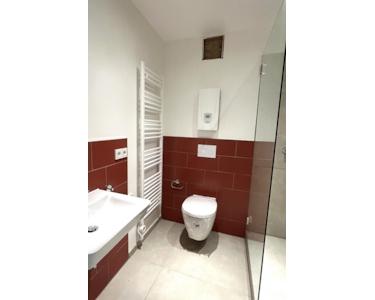 Duschbereich 80 x 160 cm, Gläserne Duschabtrennung, WC, Waschtisch, Durchlauferhitzer, Spiegelschrank