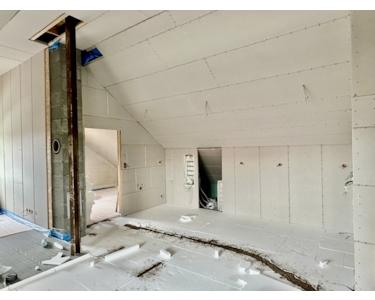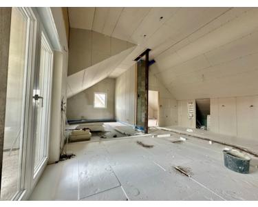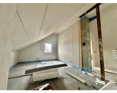 Die obere Etage ist so geplant worden, dass auch eine separate Wohneinheit im Dachgeschoss möglich wäre. Hierzu sind die Anschlüsse für das Badezimmer und eine Küche bereits vorhanden.