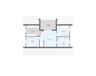 Über eine massive Betontreppe gelangen Sie in das Dachgeschoss des Hauses und hier sind die möglichen Kinderzimmer und eine große Loggia mit Ausrichtung nach Südwesten untergebracht.