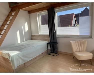 2 Zi.Whg., über 2 Ebenen, EG und 1. OG, möbliert und vollständig ausgestattet. Im EG: Wohnzimmer mit Terrasse und integrierter Einbauküche, seperates Bad. Im 1. OG: Schlafzimmer mit 140-er Bett, Hochebene, Abstellraum, offener Nebenraum mit Schreibtisch. Fußbodenheizung. Miete 900,- € zuzügl. Strom nach Verbrauch (Vorauszahlung 40,- €) pro Monat, Interent-Anschluss vorhanden (eigene Anmeldung). Nur für NR!