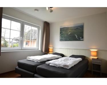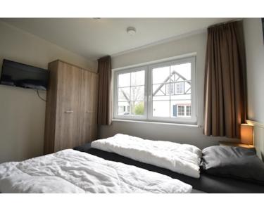 Auch im Obergeschoss befindet sich dieses angenehme Schlafzimmer mit einem gemütlichen Boxspringbett, einem praktischen Kleiderschrank und einem Fenster, das für Licht und frische Luft sorgt. Ideal zum Entspannen nach einem erlebnisreichen Urlaubstag.
