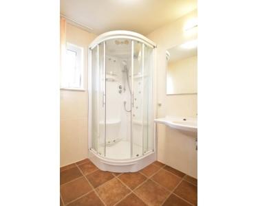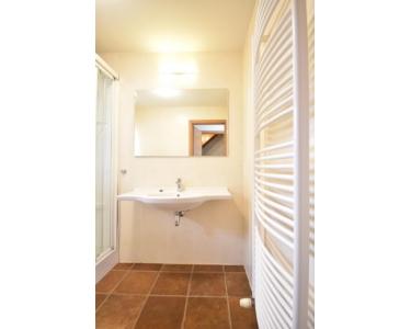 Dieses en-suite Badezimmer ist komfortabel ausgestattet mit einem Waschbecken, einer modernen Duschkabine und einem Design-Heizkörper für angenehme Wärme. Funktional und stilvoll – direkt vom Schlafzimmer aus zugänglich.