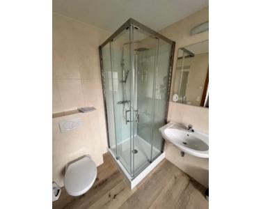Das letzte Badezimmer ist mit einer neuen Duschabtrennung und einem Waschbecken ausgestattet. Funktional und frisch, perfekt für den täglichen Gebrauch.