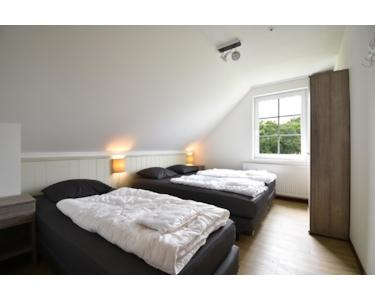 Dieses Schlafzimmer im Erdgeschoss ist nicht nur praktisch, sondern auch gemütlich eingerichtet – mit bequemen Boxspringbetten und einem geräumigen Kleiderschrank. Besonders komfortabel: das eigene Badezimmer en suite liegt direkt daneben. Alles da für einen rundum entspannten Aufenthalt!