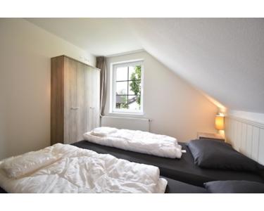 Dieses Schlafzimmer im Obergeschoss ist ausgestattet mit zwei bequemen Boxspringbetten und einem großen Wäscheschrank. Ein ruhiger Rückzugsort zum Entspannen nach einem erlebnisreichen Tag.