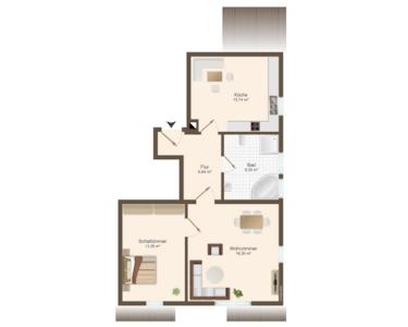 Die praktisch und großzügig geschnittene 60,4 m² Wohnung verteilt sich auf 2 Räume. Die gepflegte und gut ausgestattete Wohnung ist durch den Aufzug im Haus gut zu erreichen.