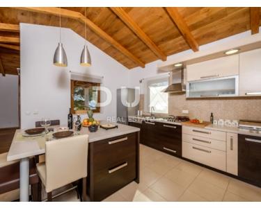 Im Herzen der kroatischen Küste, zwischen Split und Šibenik gelegen, liegt eine der schönsten Küstenstädte an der Adria – Trogir. Trogir, eine kleine, charmante Stadt, die eine Kombination aus Gastronomie, Natur und Kultur bietet, ist eine der am besten erhaltenen romanisch-gotischen Städte Mitteleuropas, weshalb sie in die UNESCO-Liste des Weltkulturerbes aufgenommen wurde. Eine der Besonderheiten, die diese von der Schönheit ihrer Vergangenheit und Natur durchdrungene Mittelmeerstadt einzigartig macht, ist ihre Insellage und der dazugehörige bezaubernde Inselarchipel. Am Anfang der Perlenkette der Inseln Mitteldalmatiens zwischen dem antiken Trogir und der Insel Šolta liegt Drvenik Veli, eine kleine Insel, die eine perfekte Flucht vor der Zivilisation in ein Reich der Stille bietet und dabei die ursprüngliche Schönheit des einheimischen Dalmatiens, des Meeres und der unberührten Natur bewahrt. Auf dieser kleinen Insel, auf der Sie sich fühlen, als wären Sie der Einzige auf der Welt, steht eine private Oase am Strand zum Verkauf. Neben der außergewöhnlichen Mikrolage in Alleinlage mit direktem Zugang zu einem Kieselstrand zeichnet sich das Objekt auch durch die Bauqualität aus, die langfristige Zufriedenheit und Wohnqualität garantiert. Das mediterrane, ganz mit Stein verkleidete Haus mit rustikalen Holzfensterläden ist eine perfekte Mischung aus Tradition und Moderne und ist als eine Wohneinheit konzipiert, die sich über Keller und Erdgeschoss erstreckt. Das Untergeschoss besteht aus einem Gesellschaftsraum – einer Taverne mit offenem Kamin, während das U-förmige Erdgeschoss, in dessen Mitte sich ein Innenhof befindet, aus vier Schlafzimmern, vier Badezimmern, einem Esszimmer mit Küche und einem Wohnzimmer besteht. Das Haus ist mit Wand- und Fußbodenheizung ausgestattet (in den Schlafzimmern ist eine Wandheizung installiert, während in der Küche und den Badezimmern eine Fußbodenheizung installiert ist), während sich im Wohnzimmer ein Holzkamin befindet. Das Wasser wird aus einem großen Reservoir mit einem Fassungsvermögen von 85.000 Litern gepumpt, während Sonnenkollektoren als Stromquelle und zur Erwärmung von Brauchwarmwasser genutzt werden. Dieses exklusive Anwesen bietet die Möglichkeit für ein komfortables Familienleben oder als Kapitalanlage in ein touristisches Vermietungsgeschäft.