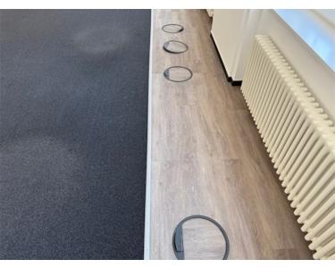 Das Büro besteht aus zwei großen Büroräumen und 5 Kleineren abgeschlossenen Büroräumen. Zur Küche gehört auch ein größeres Esszimmer. Es gibt eine Toilette im Büro und zwei im Hausflur beim Eingang zum Büro. Steckdosen und EDV Anschlüsse befinden sich in Bodentanks
