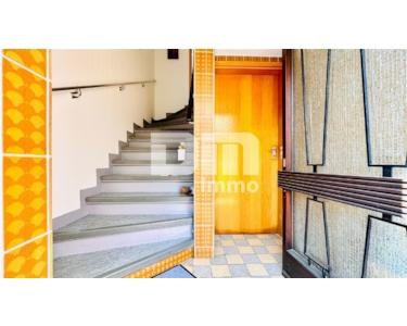 Von hier gelangen Sie über eine massive Treppe mit PVC- Belag zur aktuell leerstehenden ersten Wohneinheit im Hochparterre.