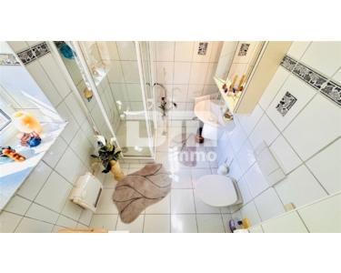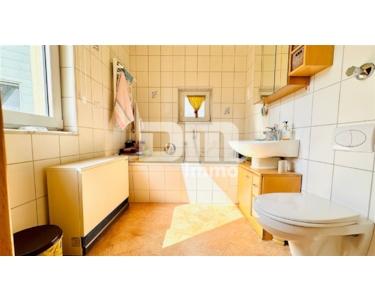 Das Tageslichtbad mit Wanne wurde teilerneuert (BJ unbekannt) und punktet mit modernem Waschbecken und Hänge-WC.