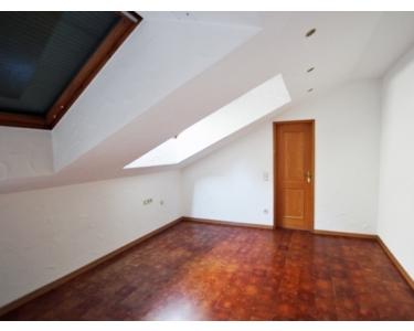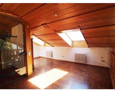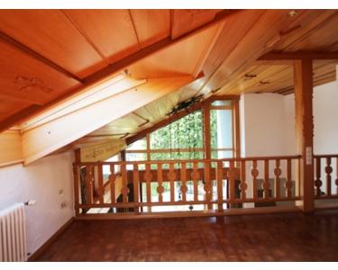 Dachgeschoss: Offene Galerie mit Blick ins Wohnzimmer, Schlafzimmer mit En-Suite-Bad, Loggia mit Blick in den Garten.