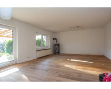 Der helle Wohn- und Essbereich mit Kaminofen schafft eine gemütliche Atmosphäre. Die neue, hochwertig ausgestattete Miele-Küche lässt keine Wünsche offen. Im Obergeschoss erwartet Sie ein modernes Bad mit Walk-in-Dusche und freistehender Badewanne, ergänzt durch ein weiteres Bad mit Badewanne im Erdgeschoss.
