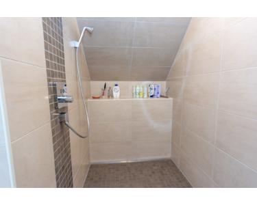- Badezimmer im Obergeschoss mit Eckbadewanne und Walk-In-Dusche