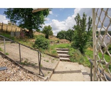 Das Haus ist ästhetisch ansprechend gestaltet, mit einer wärmegedämmten Fassade, die größtenteils weiß verputzt ist und Kunstschieferplatten aufweist. Der schön terrassierte Garten wird von einem großen Apfelbaum gekrönt und beherbergt eine Vielfalt an weiteren Obstbäumen. Die großen Grünflächen sind ideal für Selbstversorger-Communitys und für ein Gewächshaus, in dem Sie Ihr eigenes Gemüse anbauen können.