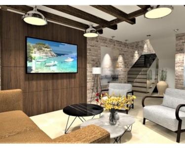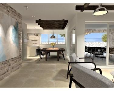 Im Erdgeschoss gibt es eine Eingangshalle, eine Veranda, ein Wohnzimmer, eine Küche mit geräumigem Esszimmer und eine Gästetoilette. Vom Wohnzimmer aus gelangt man in einen wunderschönen Garten mit beheiztem Swimmingpool, Sonnendeck, Außengrill, Pergola, zahlreichen mediterranen Pflanzen und einem autochthonen Steinhaus, das in eine Taverne umgewandelt wurde.
