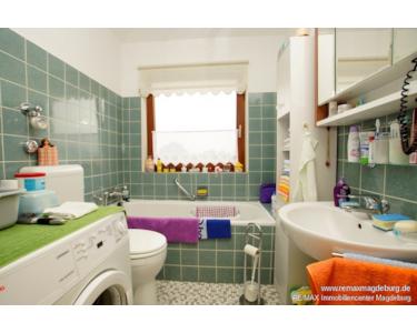 Das Tageslichtbad ist mit einer geräumigen Dusche, Wanne, Waschmaschinenanschluss, WC und Waschtisch ausgestattet.