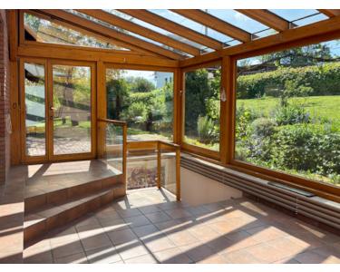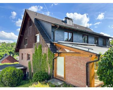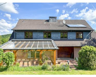 Die rechte Haushälfte teilt sich wie folgt auf: eine Diele, eine Küche, ein großzügiger Wohn- / Essbereich ein Wintergarten mit Zugang in den Garten, ein Gästezimmer, ein WC und ein Abstellraum. Im Dachgeschoss finden Sie eine Diele, ein Badezimmer, einen Balkon sowie 5 Schlafzimmer.