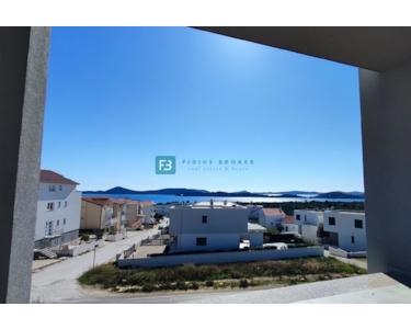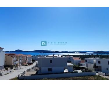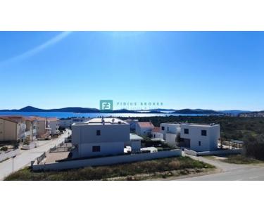 Neu gebaute Doppelhaushälfte im neuen Wohngebiet der Stadt Vodice. Dieses Anwesen, nur 700 m vom Strand und 900 m vom Stadtzentrum entfernt, ermöglicht Ihnen, dem Trubel und Stress der Stadt zu entfliehen und dennoch sind Sie nur wenige Minuten von allen Annehmlichkeiten entfernt, die Vodice zu bieten hat. Einer der größten Vorteile dieser Immobilie ist die dreistöckige Aufteilung, die mehr Privatsphäre und mehr Wohnraum bietet. Das Haus verfügt über eine wunderschöne Terrasse, ideal zum Entspannen und Genießen, mit Blick auf das Meer und die Umgebung. Ein zusätzlicher Vorteil ist der Swimmingpool und ein großer privater Garten, der gemäß dem Projekt eingezäunt und landschaftlich gestaltet wird. Zu jeder Gebäudehälfte gehören zwei Parkplätze. Von allen Etagen aus hat man Meerblick.