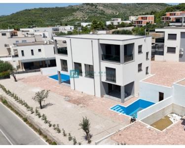 VODICE – Zum Verkauf steht eine moderne Doppelhaushälfte mit Swimmingpool auf einem sanften Hügel mit Panoramablick auf das Meer!