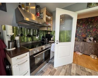 Separate Wohnküche mit ca. 10 m², ausgestattet mit einer modernen Einbauküche inklusive Herd, Backofen, Spüle und Kühlschrank