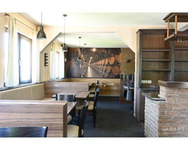 Das Haus bietet im Erdgeschoss einen schönen Wirtshausgastraum mit Theke, Zapfanlage und einen Biergarten mit befestigtem Boden. Die Küche ist großzügig bemessen.