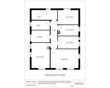 Die darüberliegende Wohnung hat fünf Zimmer, eine große Küche und ein Tageslichtbad und eignet sich als Betreiberwohnung oder auch als Vermietobjekt.