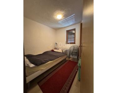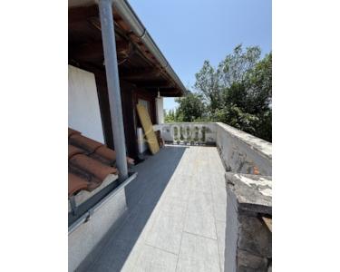 Das Haus ist aufgeteilt in Erdgeschoss und hohes Dachgeschoss mit einer Gesamtwohnfläche von 115 m². Im Erdgeschoss befindet sich eine Wohnung von 58 m², die aus drei Schlafzimmern, einem Wohnzimmer mit Zugang zur überdachten Terrasse, einer Küche und einem Badezimmer besteht. Das hohe Dachgeschoss, das über eine Außentreppe erreichbar ist, umfasst eine zweite Wohnung mit Küche und Wohnzimmer, Badezimmer und einem unvollendeten Raum, der nach den Wünschen und Bedürfnissen des zukünftigen Eigentümers gestaltet werden kann. Ein Teil des Gartens ist für Parkplätze vorgesehen, und es besteht die Möglichkeit, einen Swimmingpool zu bauen.