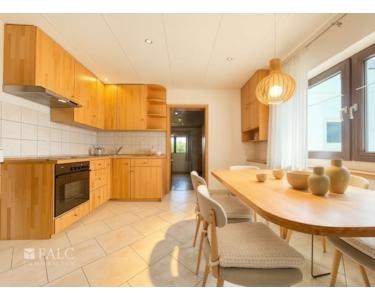 Die vorhandene Einbauküche ist funktional ausgestattet und bietet alle wichtigen Geräte für den täglichen Gebrauch. In den verschiedenen Räumen wurden je nach Nutzung PVC-Böden, Teppich oder Fliesen verlegt, was für eine praktische und vielseitige Raumgestaltung sorgt.