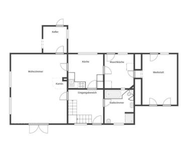 Zusätzlichen Komfort bietet ein Waschraum im Erdgeschoss. Zudem ist eine Werkstatt vorhanden, die über ein weiteres Bad verfügt – ideal für Hobby oder handwerkliche Tätigkeiten mit praktischer Ausstattung.