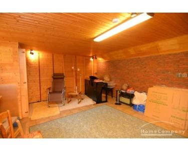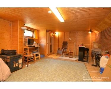 zusätzlicher Hobbyraum mit Kicker und Infrarot-Sauna. Ein heller Wohnbereich mit Zugang zur Terrasse und dem Garten mit der Garage.