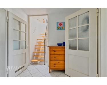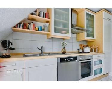 Die gemütliche Maisonettewohnung im Dachgeschoss und Spitzboden erstreckt sich über ca. 85 m² und besticht durch ihr besonderes Wohnambiente. Im unteren Bereich befinden sich die Küche mit Zugang zum Balkon, ein Wohnbereich sowie ein Arbeitszimmer. Zudem gibt es ein weiteres Zimmer das als großer Abstellraum genutzt wird. Über eine Treppe gelangt man ins Dachgeschoss, wo sich der großzügige Schlafbereich mit integrierter Ankleide befindet.