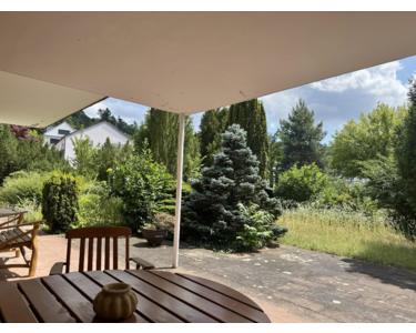 Vom Wohnbereich sowie vom Arbeitszimmer erhalten Sie Zutritt auf die große Terrasse, ein Teil davon überdacht – perfekt für entspannte Stunden im Freien, geschützt vor Wind und Wetter. Der angrenzende, weitläufige Garten bietet viel Raum für Freizeit, Spiel und Erholung.