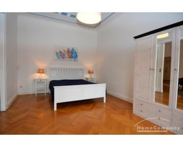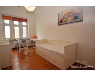Bestlage Schmargendorf, nur kurze Wege zu Bus, Schulen, Sport- und Einkaufsmöglichkeiten. Die 4-Zimmer-Wohnung ist neu renoviert und ist Teil eines wunderschönen Jugendstil-Altbaus, sie liegt in der dritten und letzte Etage, ausgesprochen ruhig und hell (West-Ost Ausrichtung). Die Raumhöhe hat 3,20 Meter. Die Wohnung ist ideal geschnitten, hat 118 Quadratmeter, Parkett- bzw. Dielenfußboden, Stuck, Holzkassettentüren, zwei Schlafzimmer (einmal Doppelbett, zwei Einzelbetten), großes Bad mit Wanne und Dusche, Wohnküche, modern eingerichtetes Wohnzimmer mit Flatscreen-TV, Esszimmer, Spülmaschine, Waschmaschine, Kaminofen.